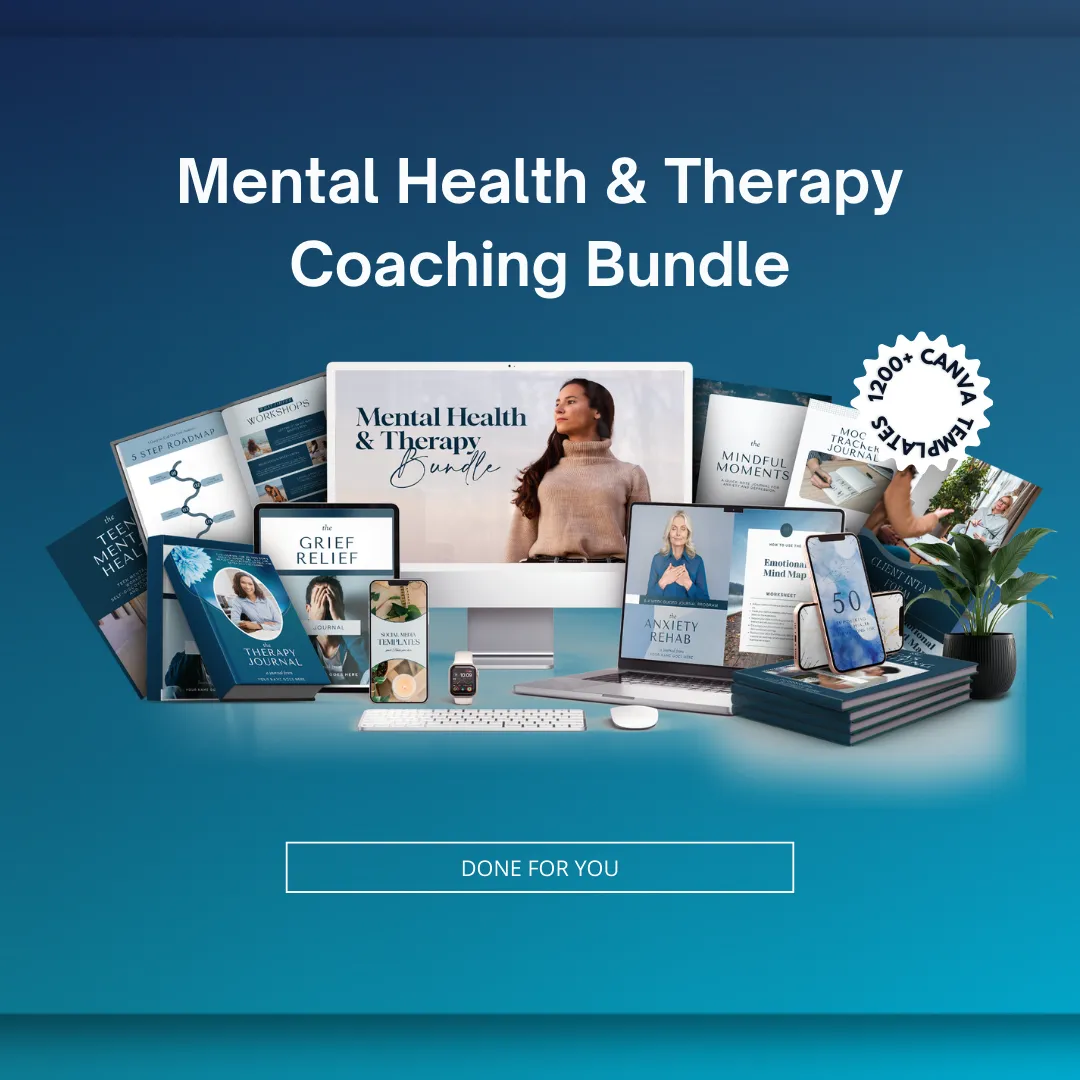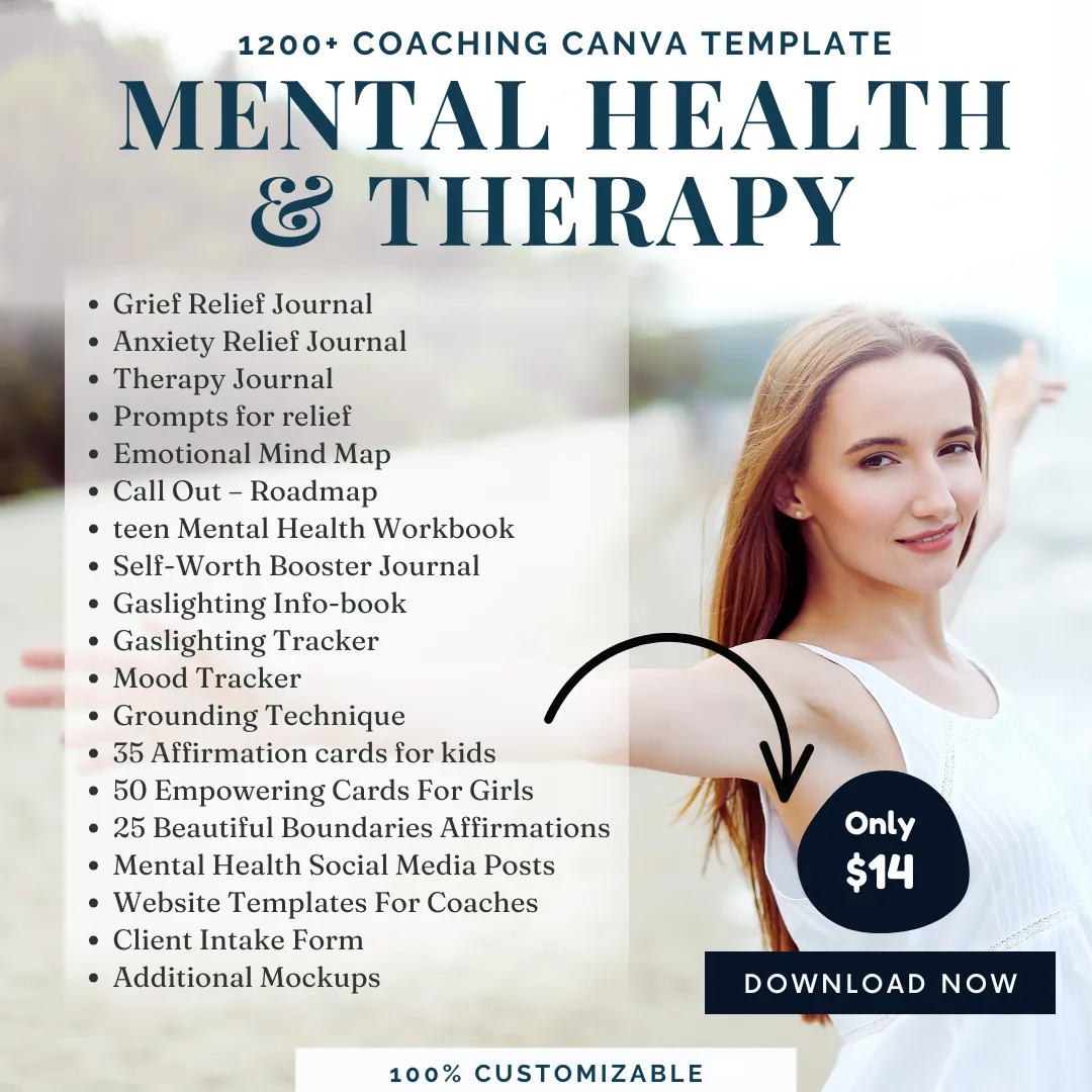 This comprehensive bundle is perfect for you for a holistic approach of Mental health & Wellness coaching. It combines essential tools like journals, trackers, and affirmations for personalized interventions. These empowers you to engage clients effectively, foster self-awareness, and establish a credible online presence, enriching the coaching journey.